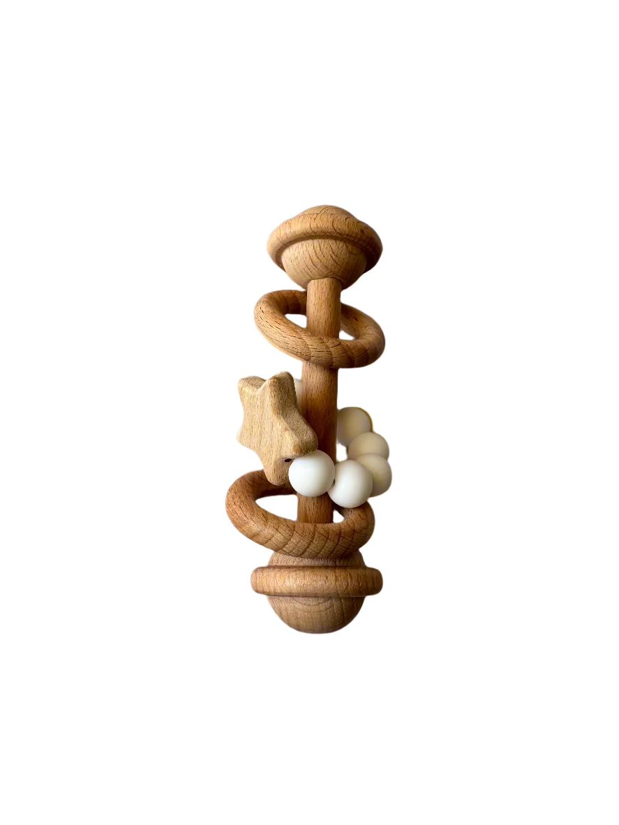 Rattle - Beech wood rattle with silicone beads to learn cause and effect, develop their hand-eye coordination, and promote their motor abilities
