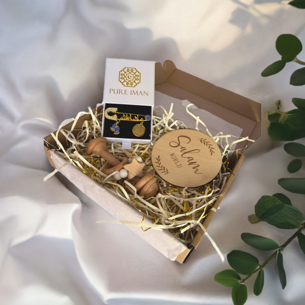 Our Blessed start Islamic baby gift box makes for a cute gift for any Muslim parents and their newborn baby.
