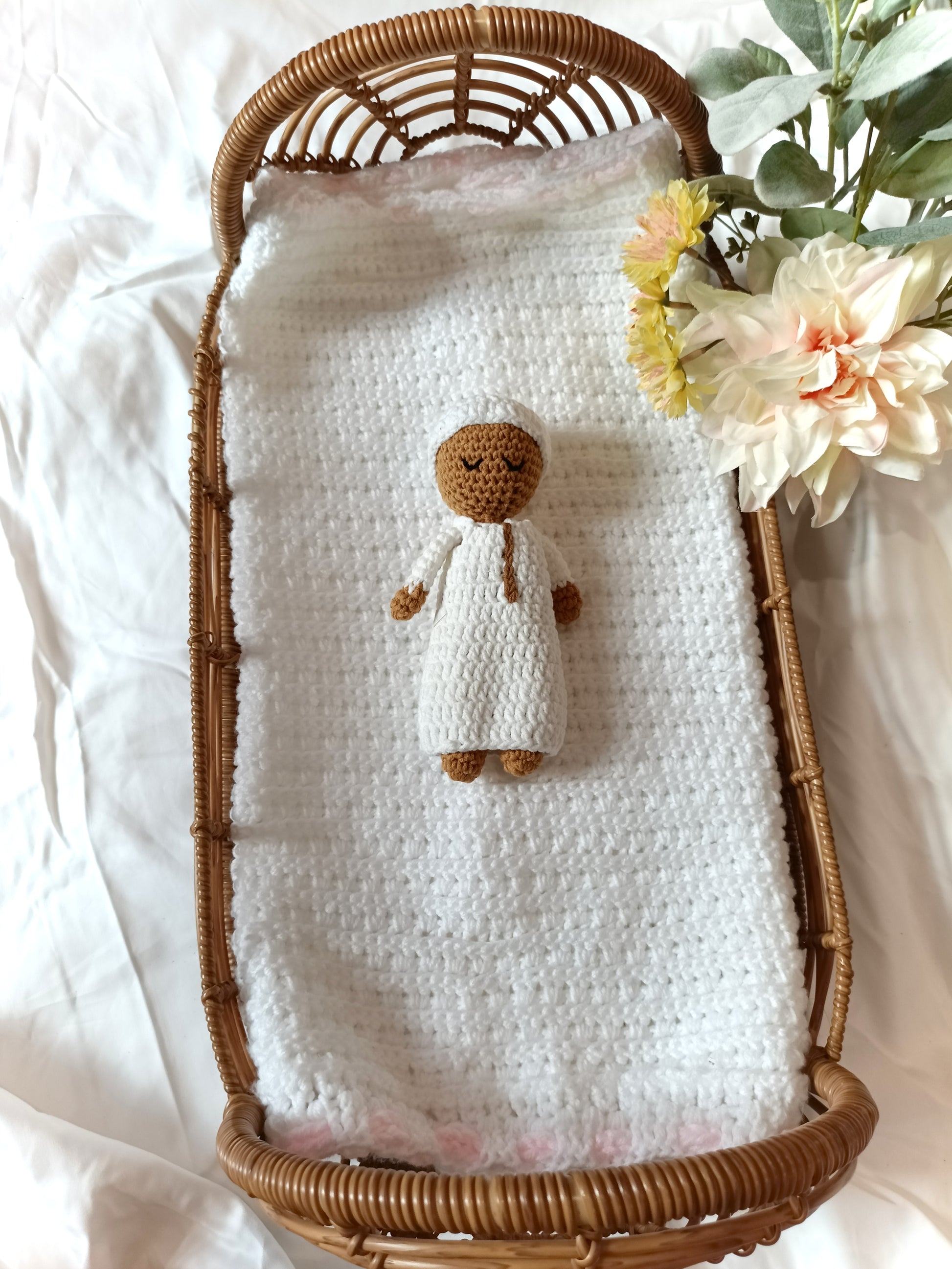 Our Kufi Crochet Doll is designed to celebrate modesty and culture. This doll is made from 100% cotton, making it soft enough for snuggles and durable for play time!